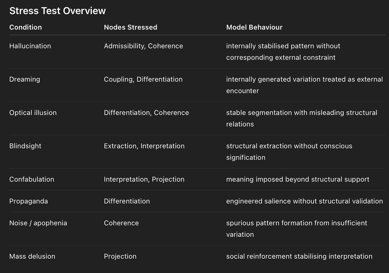 The present model differs in providing a broader ontological architecture within which such processes operate, incorporating constraint field, posture, and interpretive projection.