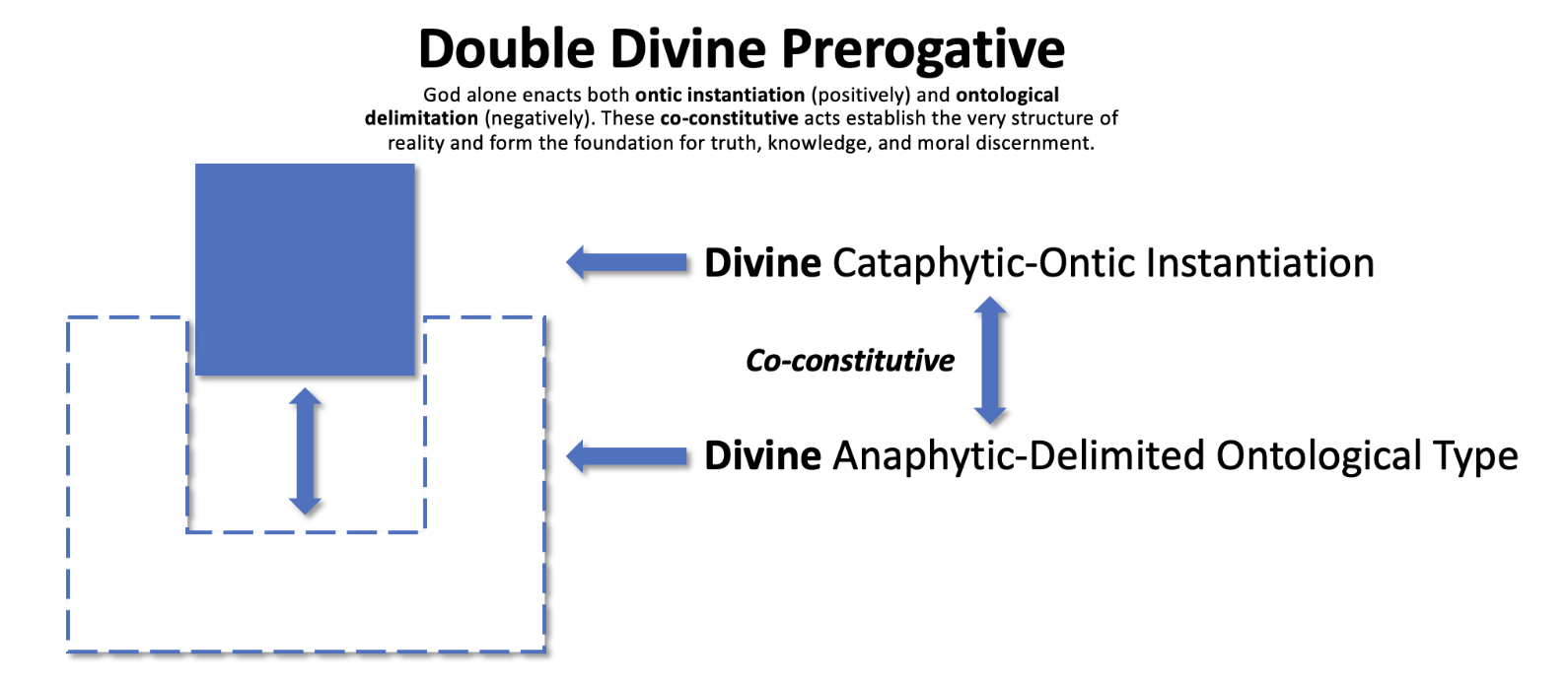 The terms anaphatic delineation and cataphatic instantiation are used here in a formalised sense extrapolated from Van Til’s distinction between negative and positive theology. Van Til himself employed the anaphatic–cataphatic polarity chiefly in the epistemic domain; this framework extends the same logic into the ontological register for the sake of structural completion.