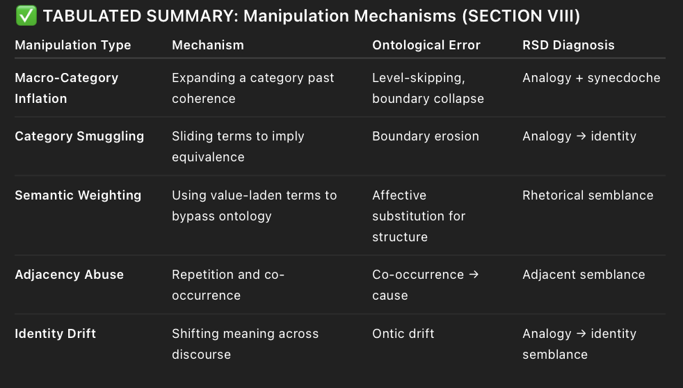Manipulation awareness: How rhetorical or ideological structures simulate coherence when relations are ontologically impossible.