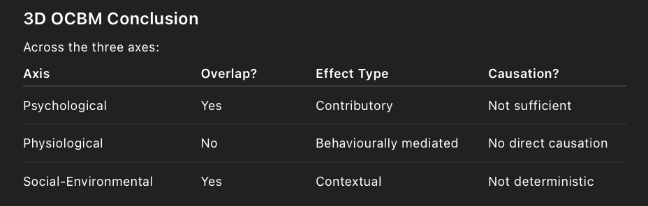In such cases, OCBM does not seek a “flat” overlap (as in a two-circle Venn diagram) but evaluates overlap across multiple ontological axes simultaneously, identifying where each dimension admits relation and where each dimension breaks it.Complex claims therefore require multi-axis pivot mapping, where truth-value may shift across several thresholds rather than a single one.