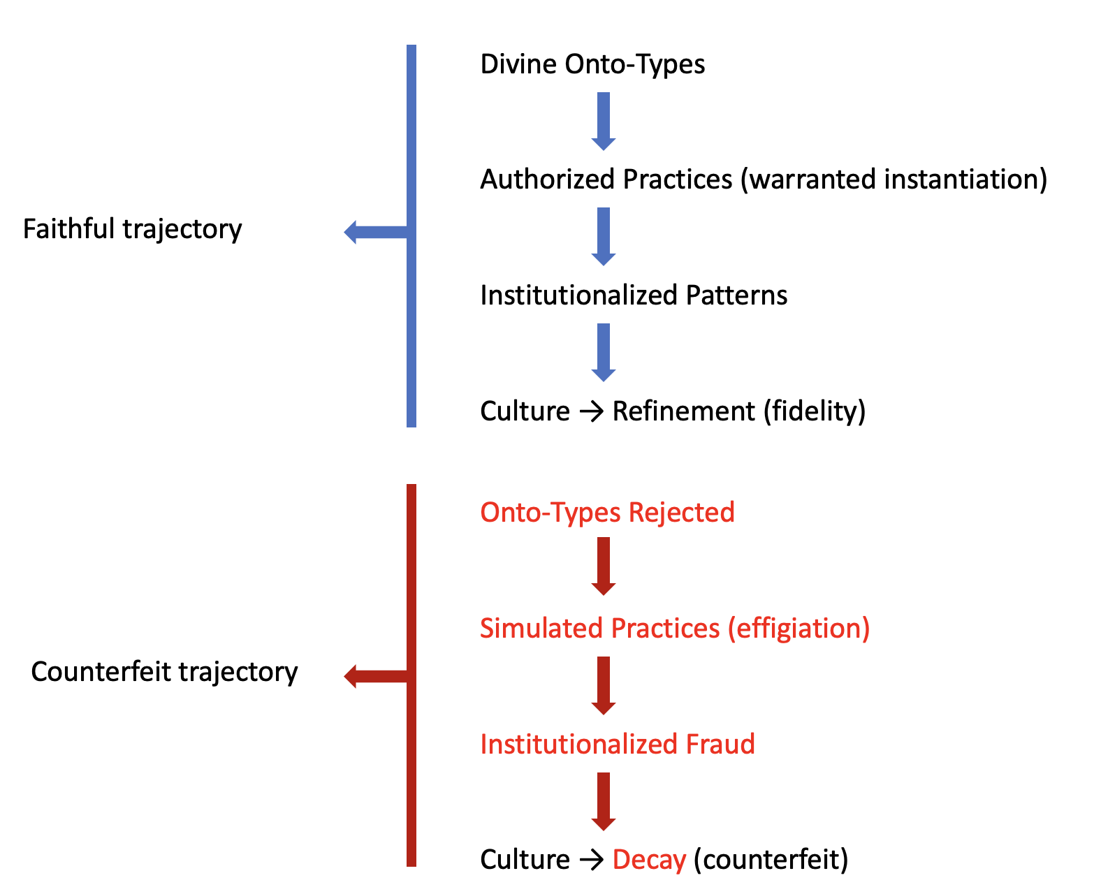 This mechanism does not suggest cultures can create new ontological kinds; they can only instantiate or simulate. Every cultural form is therefore a test case: a faithful extension of divine reality or a fraudulent inversion of it. Neutral description that erases this distinction is not objectivity but complicity.