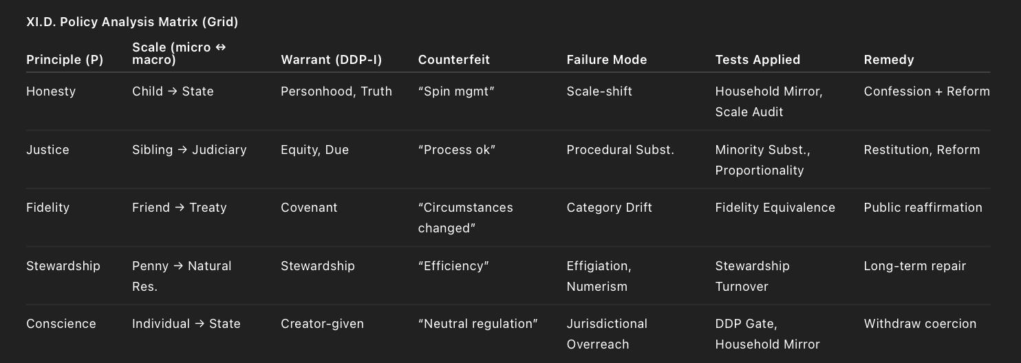 Applied Ontology has shown that the ontological fixities established in the main essays are not abstract metaphysics but structural safeguards for lived reality. By codifying axioms, identifying failure modes, and providing operational tests, this appendix has supplied a bridge between theological ontology and applied ethics, governance, pedagogy, and rhetoric.