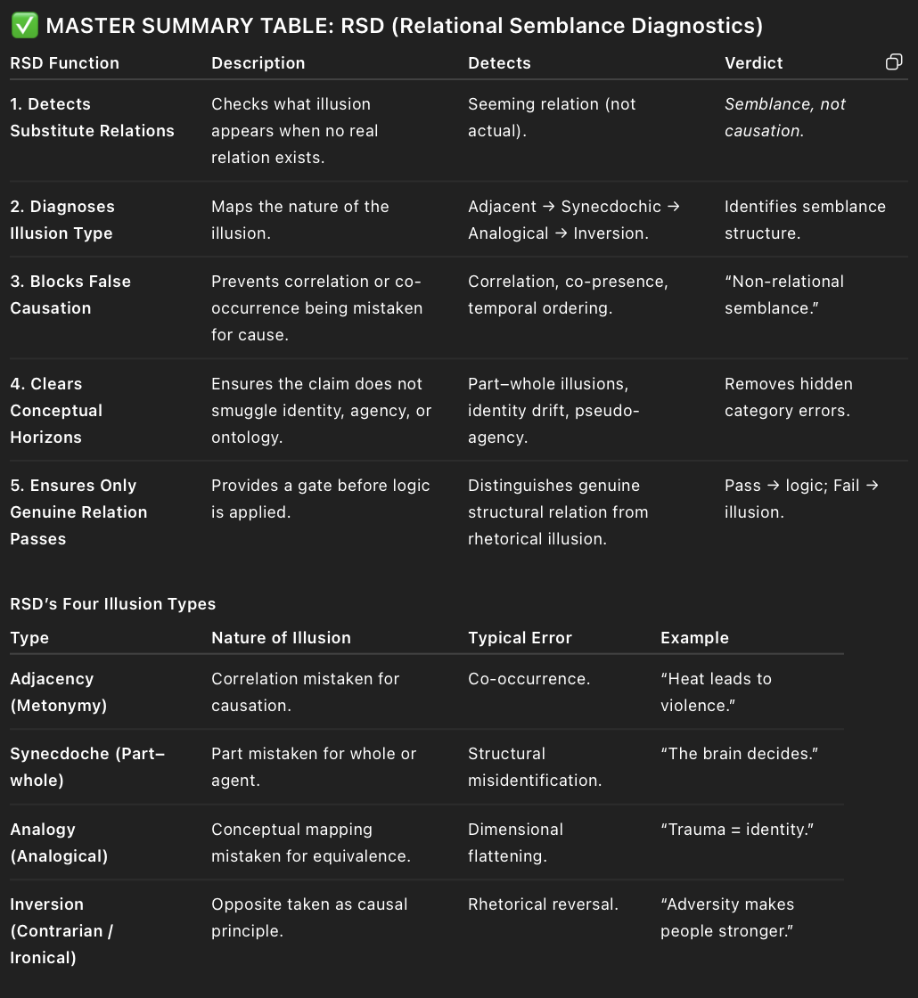 In what follows, we introduce a three-stage diagnostic architecture: (1) an Ontological Category-Boundary Method (OCBM), (2) a Relational Semblance Diagnostics (RSD) tool, and (3) classical logic applied only to the claims that survive both. The rest of the essay simply unpacks, tests, and applies this sequence.